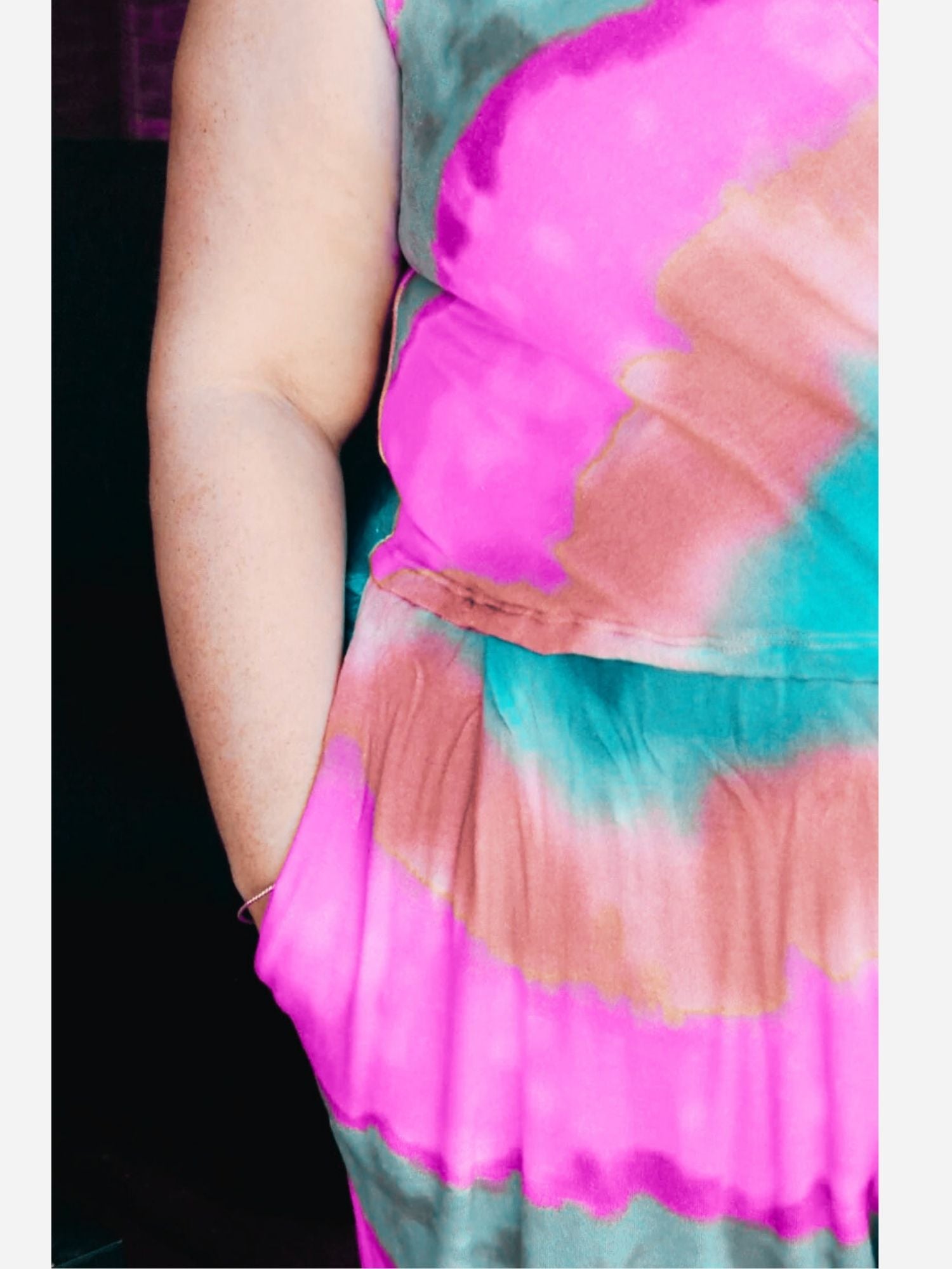 Wear this cozy and comfy jumpsuit to run errands, chase the kids at the park or to just chill on the deck with a cocktail on a warm summer afternoon. Jumpsuit features elasticated waist, crossover top and pockets and can be customised in a number of ways through initial consultation, including adding sleeves, lengthening or shortening the pants or adjusting the neckline