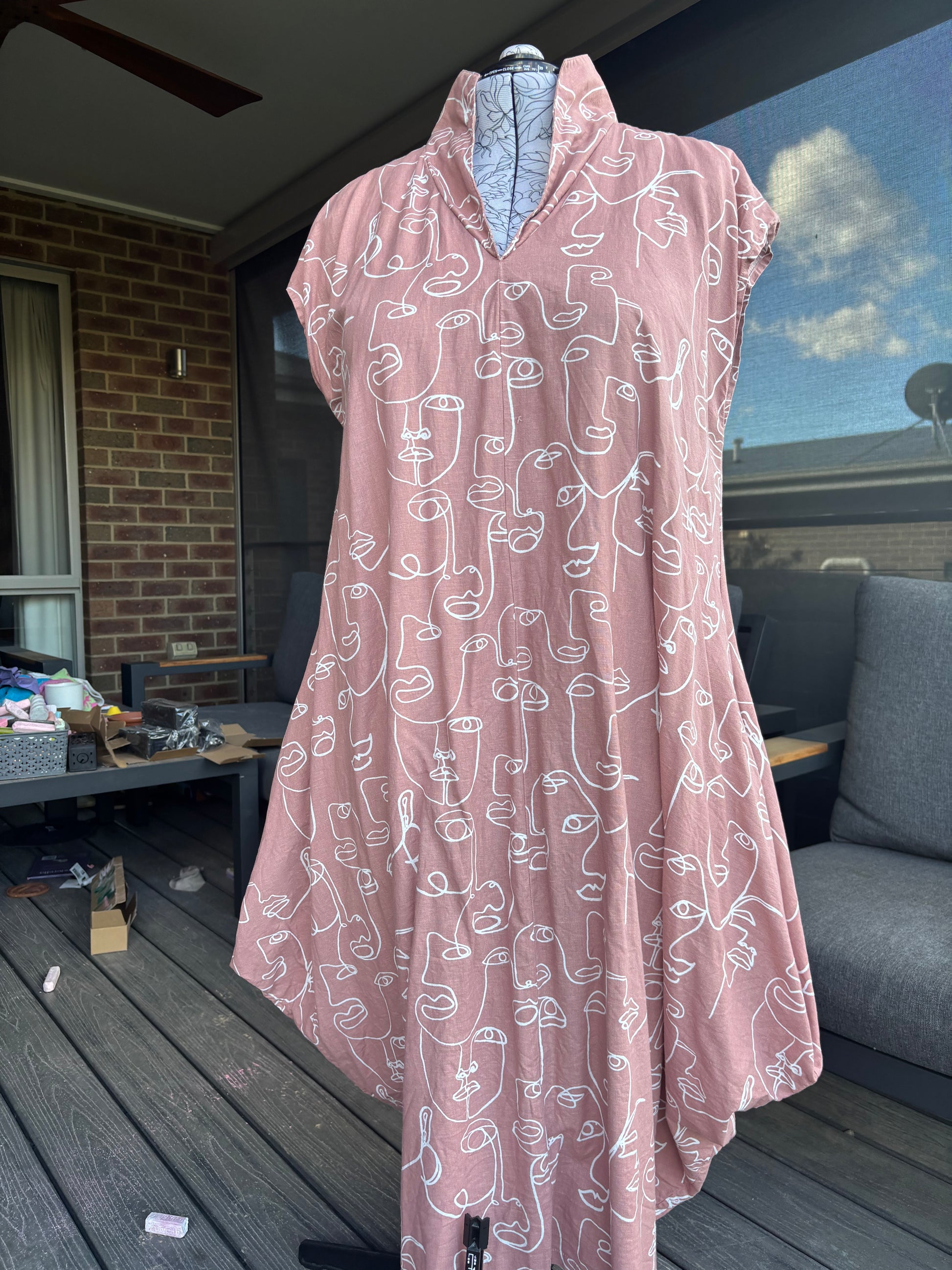 This sample has been made in a gorgeous cotton/linen blend, in dusty pink with line drawings.